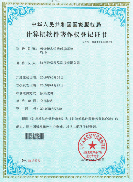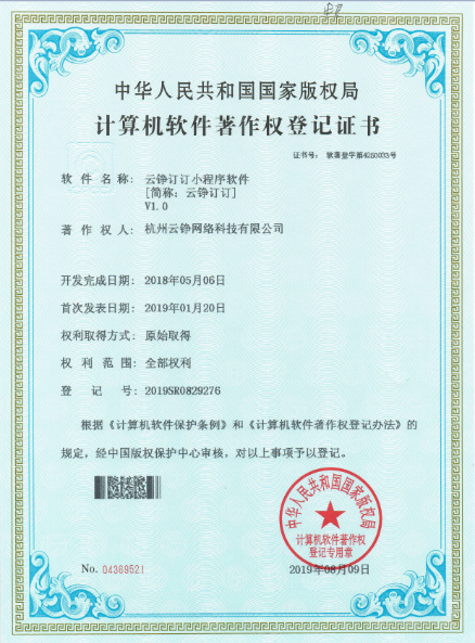云铮网络非常注重自助创新和知识产权的保护,在2019年8月9日,获得了中华人民共和国国家版权局颁发的《计算机软件著作权登记证书》,共涉及我公司的三大主打产品,值得庆祝!!!